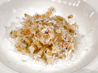 ホタルイカと三重菜花のジェノベーゼ風タリアテッレ