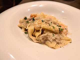 海老とポルチーニ茸のクリームソース パッパルデッレ